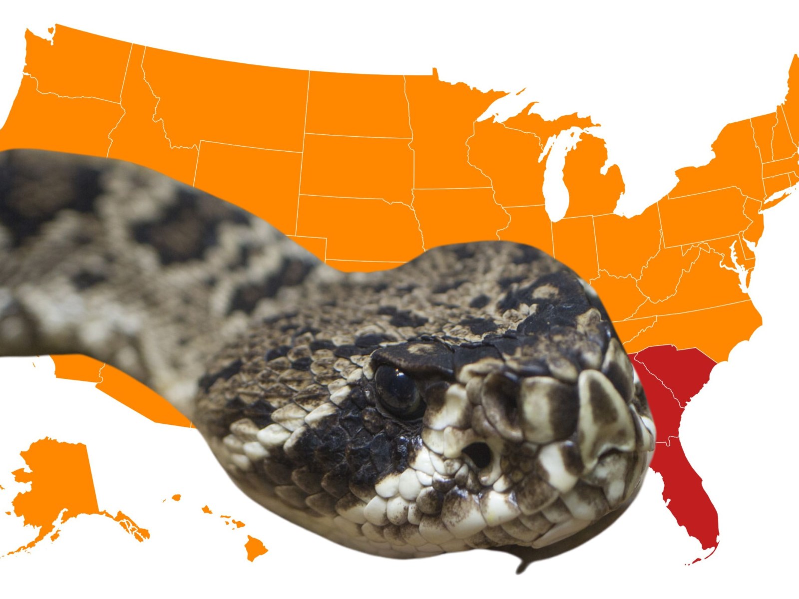 Eastern Diamondback Rattlesnake Map Shows Habitats in US States