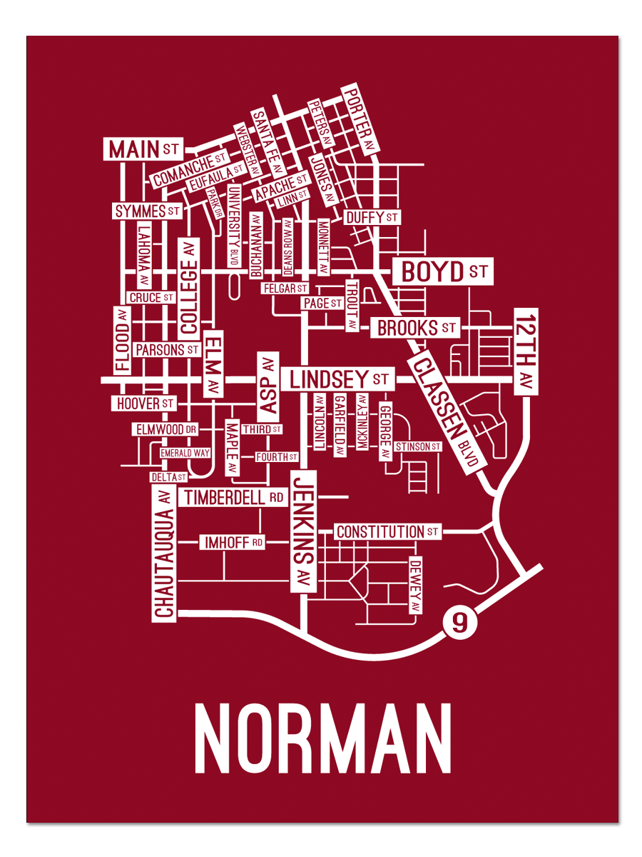 Norman, Oklahoma Street Map Print School Street Posters