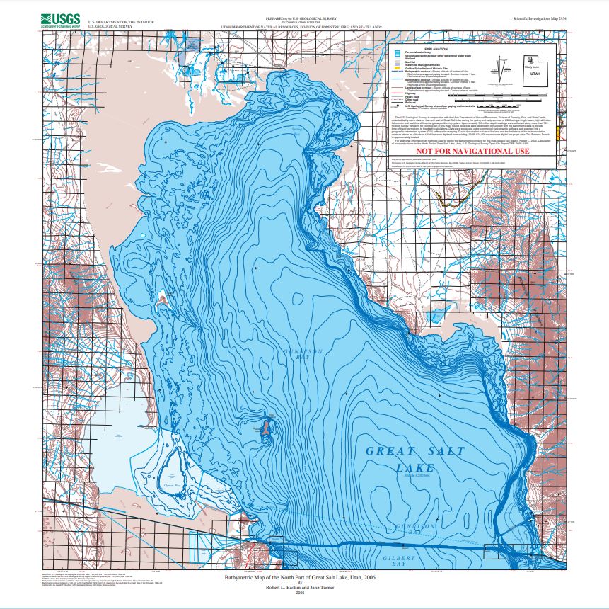 Bathymetric Great Salt Lake North โ Natural Resources Map & Bookstore